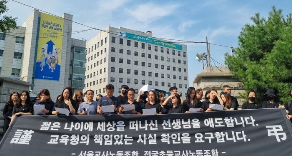 "교육부와 당국의 심도 깊은 추적 요구" 서울 서초구 소재 초등학교에서 극단적 선택을 한 저연차 교사 유가족이 교육부와 당국의 진상 규명을 요구했다.