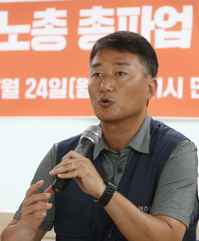 지난 3일부터 15일까지 2주간에 걸친 민주노총의 총파업 투쟁이 마무리됨에 따라 24일 오전 서울 중구 민노총 회의실에서 민주노총 총파업 보고 및 이후 계획 발표 기자회견이 열렸다.