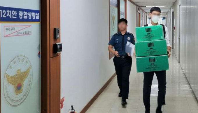 ▲ 24명의 사상자가 발생한 충북 청주 오송의 지하차도 침수 사고와 관련해 검찰 관계자가 24일 충북경찰청 112상황실로 압수수색 박스를 들고 들어가고 있다.