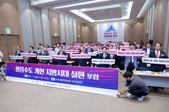 세종시는 25일 정부세종컨벤션센터에서 행정수도 개헌 분위기를 조성하고 지방시대 실현과 미래전략수도 완성을 위해 '행정수도 개헌 지방시대 실현 포럼'을 개최했다.