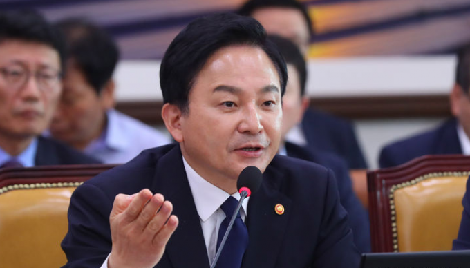원 장관은 "강 아래 접속부 땅은 상수원 구역이나 수변 구역으로 개발이 금지돼 있다"며 "민주당은 '용도 변경을 해서 개발할 것 아니냐'고 하는데 법으로 금지돼 있다"고 못박았다.