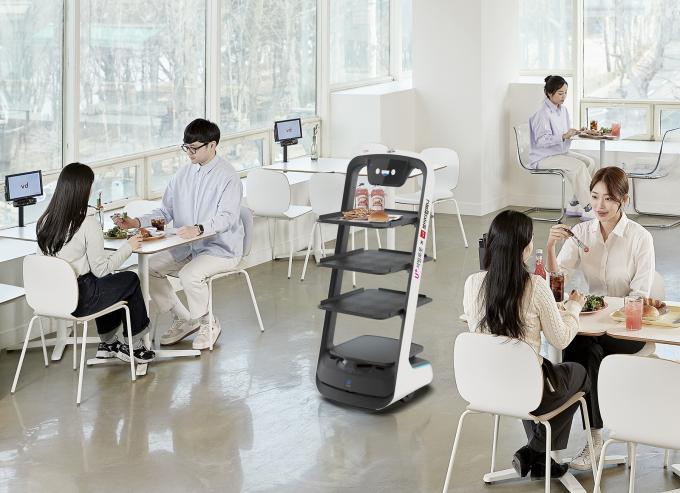 대형 트레이가 탑재돼 십여개의 반찬과 4인 기준 식사를 무리 없이 서빙하며 무인화·자동화 솔루션과 연동돼 메뉴 주문부터 퇴식까지 매장 자동화도 가능케 한다.