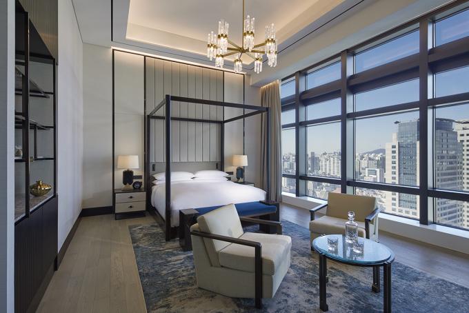 그랜드 인터컨티넨탈 서울 파르나스와 그랜드 하얏트 제주도 시몬스도 협업으로 특별 제작된 '뷰티레스트-파르나스'와 '뷰티레스트-하얏트'를 비치하고 있다.