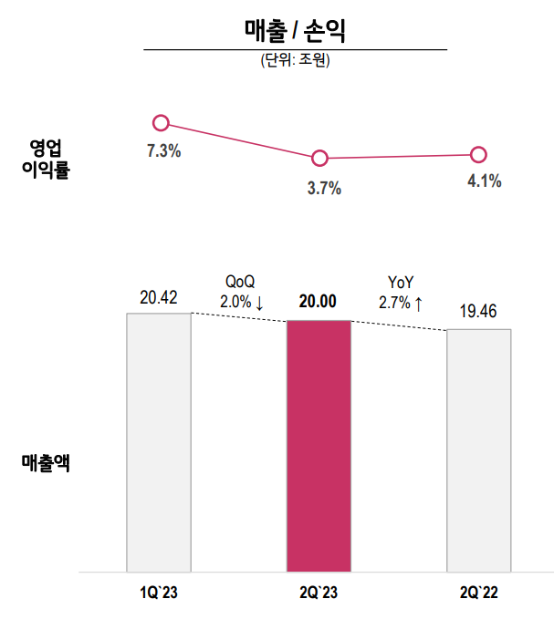 BS(Business Solutions)사업본부의 2분기 매출액은 1조 3327억 원, 영업이익 26억 원으로 전년보다 모두 줄었다.