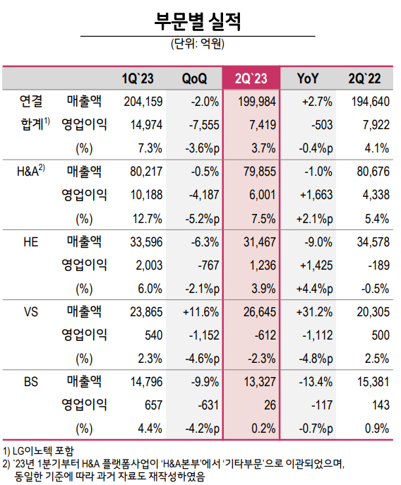 VS사업본부의 2분기 영업이익은 일회성 비용 1510억 원을 반영, 최종적으로는 영업손실 612억 원으로 조정됐다.