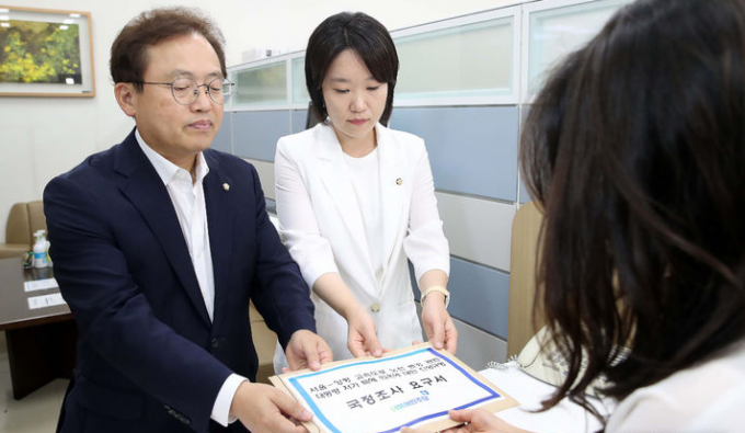 민주당은 이날 의원총회에서 국정조사 요구서 제출을 당론으로 채택했고 박광온 원내대표 등 당 소속 의원 전원이 요구자로 이름을 올렸다.