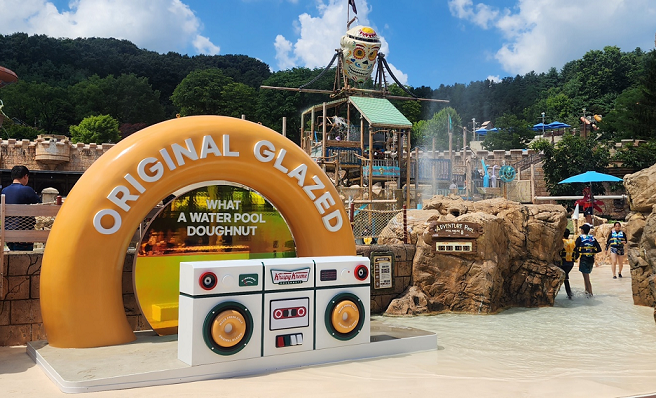 이후 대표 물놀이 시설인 '캐리비안 베이' 방문 고객을 겨냥, 도넛과 물놀이를 컬래버레이션한 이번 오프라인 프로모션을 준비했다.
