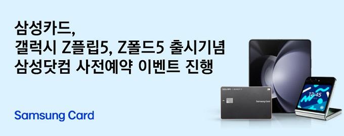 삼성카드는 갤럭시 Z플립5, Z폴드5 출시를 기념해 삼성닷컴 사전 예약 이벤트를 진행한다고 1일 밝혔다.