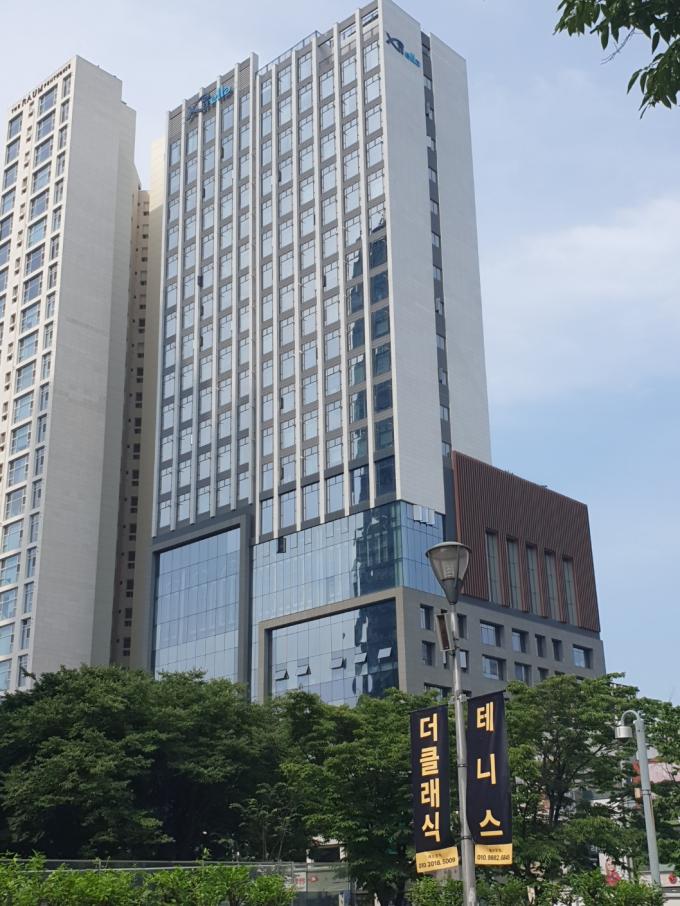 옛 백제예식장 터에 지하 6층, 지상 20층, 1개동으로 지어진 이 건물은 318실 오피스텔과 상업시설로 구성돼 있다.