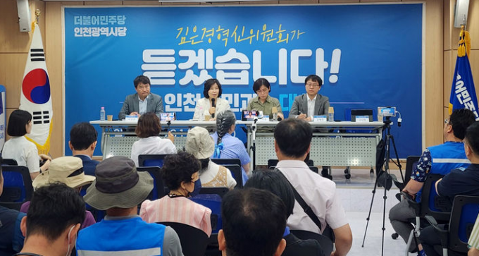 ▲ 더불어민주당 김은경 혁신위원장이 지난 1일 인천시당에서 시민과의 대화를 하고 있다. [민주당 인천시당 제공]