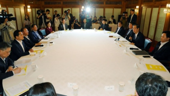 ▲ 2일 오후 서울 종로구 총리공관에서 진행된 LH 아파트 부실 시공에 대한 고위 당정협의회 현장. [뉴시스]