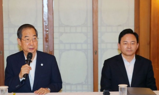 ▲ 한덕수 국무총리가 2일 오후 서울 종로구 총리공관에서 열린 LH 아파트 부실 시공에 대한 고위 당정협의회에서 발언하고 있다. 오른쪽은 굳은 표정의 원희룡 국토교통부 장관.[뉴시스]