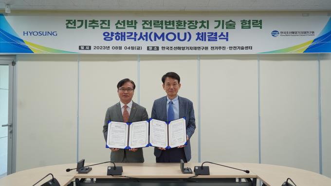 효성과 KOMERI는 산업통상자원부 산하 한국산업기술평가관리원 주관 '친환경 선박 전주기 핵심기술개발 사업'에 필요한 MW(메가와트)급 대용량 전력변환장치(드라이브, 컨버터)의 기술 개발을 위해 협력하기로 했다고 4일 밝혔다.