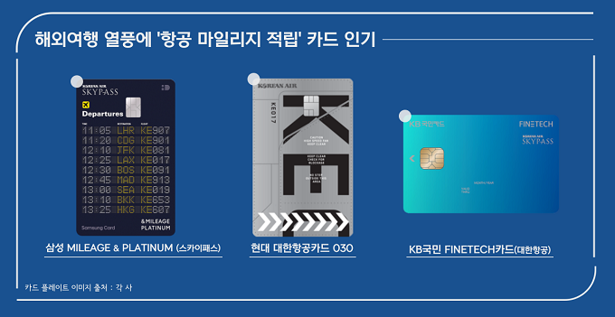해외여행 열풍이 불자 항공사 마일리지를 적립해주는 카드가 인기다. 서울에서 직장을 다니는 30대 김모 씨는 최근 항공사 마일리지를 모을 수 있는 신용카드로 교체발급 받았다.