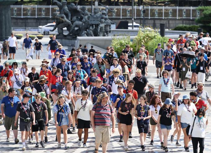 새만금에서 철수한 영국 잼버리 대표단이 8일 오전 경기도 파주시 적성면의 설마리 영국군 추모공원을 참배한 뒤 오후에 서울 용산 전쟁기념관을 방문했다.