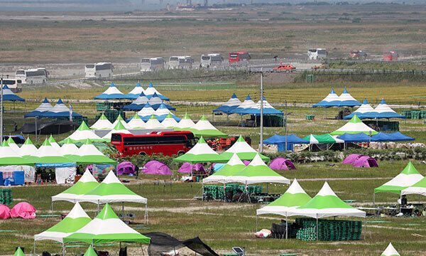 ▲ 지난 8일 오후 전북 부안군 2023 새만금 세계 스카우트 잼버리 야영지에서 각국 스카우트 대원들을 태운 버스가 떠나고 있다. [뉴시스]