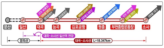 이번에 추가 개통되는 구간은 대곡~곡산~백마~풍산~일산역까지 6.8㎞로 이 지역 시민들이 환승 없이 경기 서남부로 빠르게 이동할 수 있게 된다. 이를 위해 기존 서해선 운행차량 7대의 개조 작업을 완료하는 등 막바지 준비가 진행 중이다.