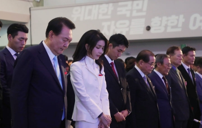윤 대통령은 이날 서울 서대문구 이화여대 대강당에서 열린 제78회 광복절 경축식에 참석, 경축사를 통해 "자유민주주의와 공산전체주의가 대결하는 분단의 현실에서 이러한 반국가세력들의 준동은 쉽게 사라지지 않을 것"이라고 지적했다.