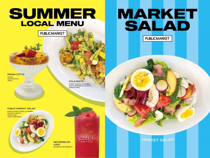 퍼블릭마켓 신메뉴 △마켓 샐러드 △제철 콜드 파스타 △판나코타는 여름 시즌 한정으로 운영된다. 시몬스 테라스점과 시몬스 그로서리 스토어 청담점에서만 맛볼 수 있다.