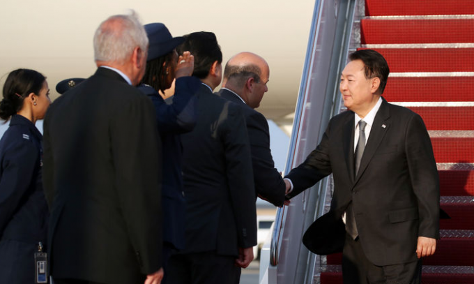 윤 대통령은 이날 오후 6시55분쯤 대통령 전용기인 공군 1호기 편으로 미 워싱턴 DC 인근 메릴랜드주 앤드루스 공군기지에 도착했다. 부인 김건희 여사는 이번 순방에 동행하지 않았다.
