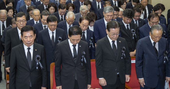 윤석열 대통령과 문재인 전 대통령은 조화를 보내 김 전 대통령을 기렸다.