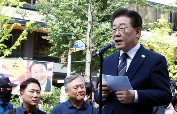 이 대표는 박성준 대변인이 대독한 입장문에서 "쌍방울 사건 관련 조사에 당당히 응하겠다"며 "검찰은 다음 주에 조사를 희망하고 있지만, 당무 등으로 전혀 시간을 낼 수 없다. 내일(24일) 오전 바로 조사를 받으러 가겠다"고 밝혔다.