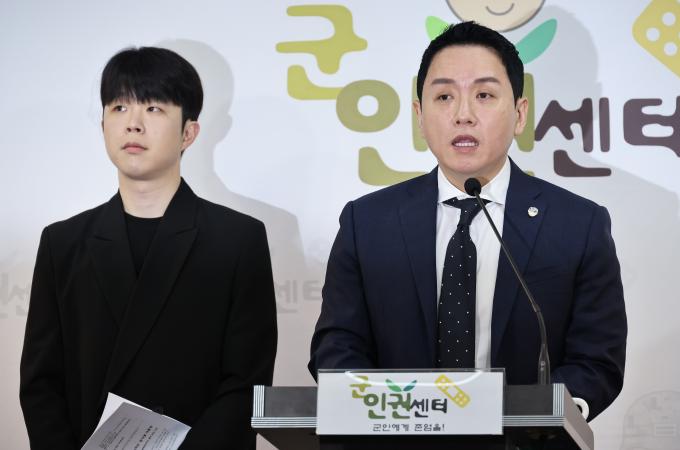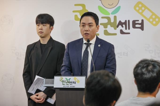 수해 지원 활동 중 사망한 고 채수근 해병 상병 사망 사건에 윤석열 대통령의 수사 외압 의혹을 제기하는 기자회견이 28일 오전 서울 서대문구 군인권센터 회의실에서 열렸다.