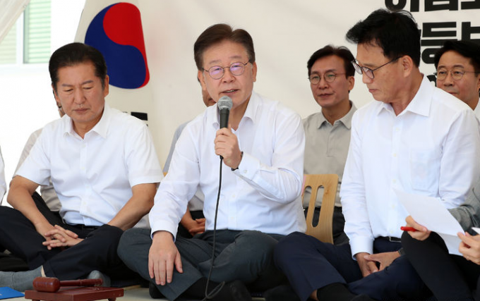 ▲ 더불어민주당 이재명 대표가 1일 국회 본청 앞 단식투쟁 천막에서 최고위원회의를 주재하며 발언하고 있다. [뉴시스]