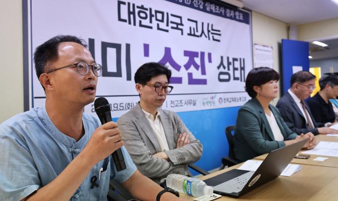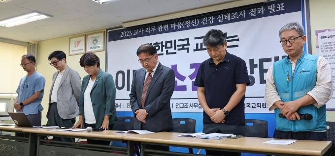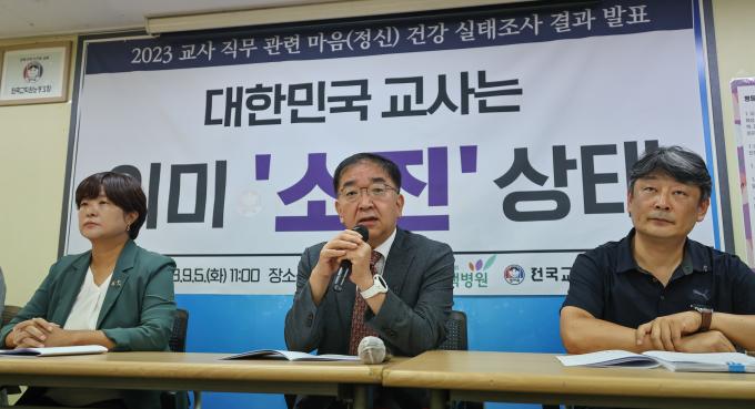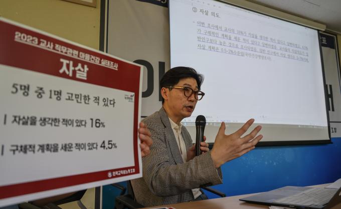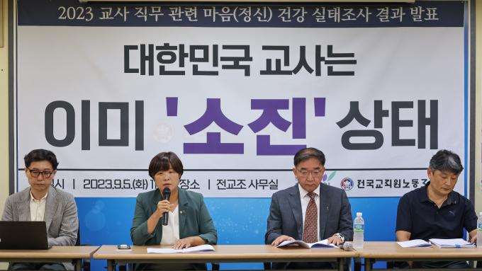 2023 교사 직무 관련 마음건강 실태조사 결과 발표 기자회견이 5일 오전 서울 서대문 전국교직원노동조합(전교조) 본부 대회의실에서 열렸다.