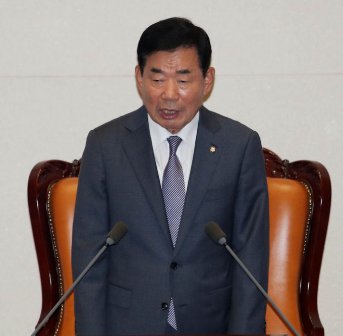 그러자 김 의장은 "그 말씀은 일리가 있어서 오늘 (대정부질문 시작 전에) 제가 한마디 하려고 한다. 원래 그런 말을 하려고 생각했었다"며 작심 발언을 했다.