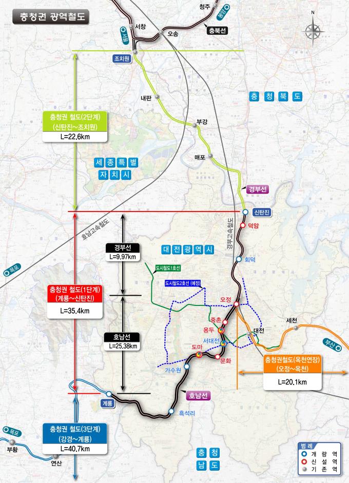 계룡~신탄진(35.4km)간 충청권 광역철도 1단계 건설사업은 노반 분야 기본 및 실시설계 완료 후 지난 7월 총사업비 협의를 거쳐 현재 연내 착공을 목표로 이달 중 발주를 준비하고 있다.