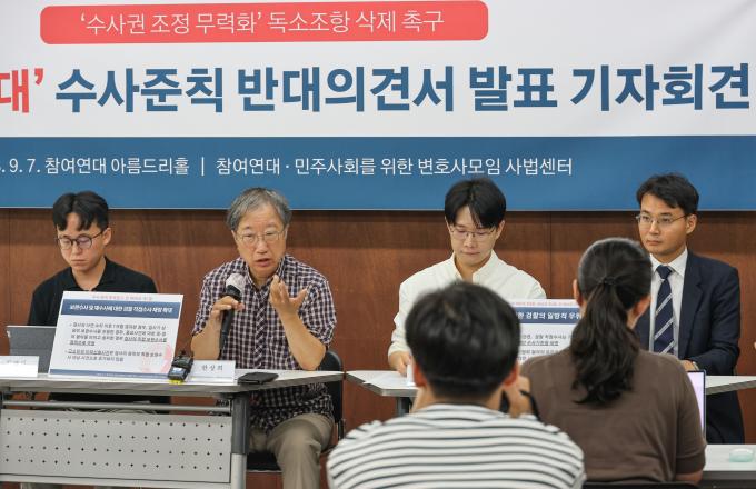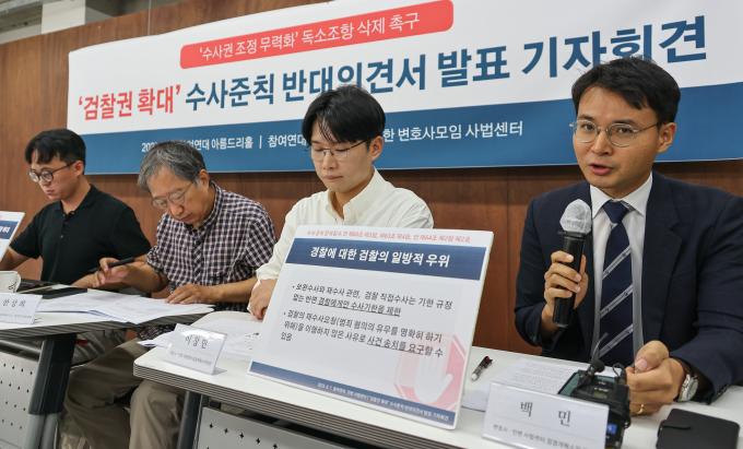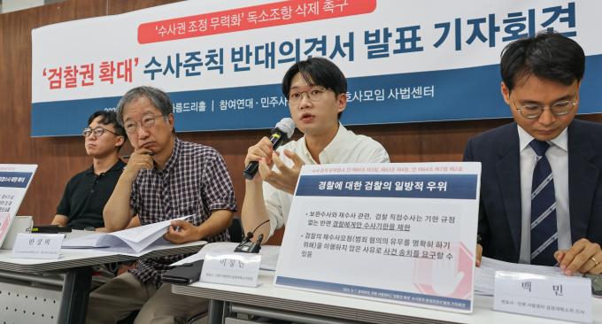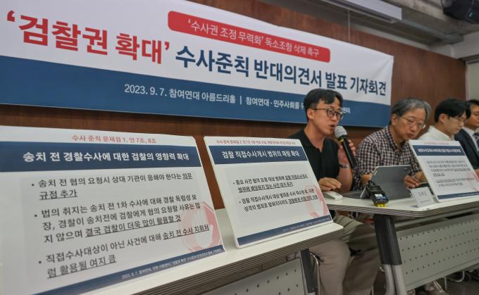 '검찰권 확대' 수사준칙 반대의견서 발표 기자회견이 7일 오전 서울 종로 참여연대 아름드리홀에서 참여연대와 민변 사법센터 주최로 열렸다.