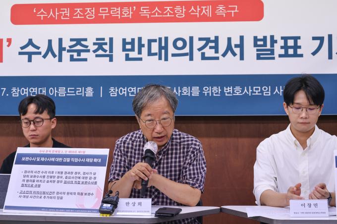 건국대 법학전문대학원 교수인 한상희 참여연대 공동대표는 "검경수사권 조정의 취지는 형사사법제도에서의 권력 분립과 수사기관 간 상호 견제 및 협력을 통해 권한 오남용을 방지하고 사건관계인의 권리를 보호하는 것에 있었다"고 설명했다.
