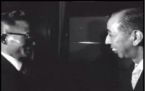 ▲  1961년 11월 일본을 방문한 박정희(왼쪽) 국가재건최고회의 의장과 기시 노부스케 전 총리. 기시 전 총리는 A급 전범으로 아베 신조 총리의 외할아버지다. 한일 국교정상화의 막후 개입으로 훗날 박정희 대통령에게 일등 수교훈장을 받는다. [대한뉴스]