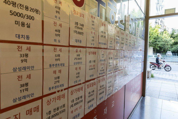 ▲ 최근 서울 강남의 한 부동산중개소에 나붙은 아파트·상가 가격 [문재원 기자]
