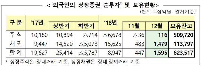 지난해 외국인이 국내 상장주식을 3년 만에 순매도한 것으로 나타났다. 상장채권은 2년째 순투자를 이어갔다.