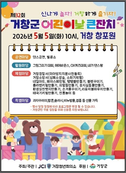 정윤민 거창청년회의소 어린이날 준비위원장은 "어린이날만큼은 어린이들이 온전히 존중받고, 근심 걱정 없이 마음껏 행복을 누릴 수 있도록 준비했다"며 "안전하고 즐거운 행사가 될 수 있도록 끝까지 최선을 다하겠다"고 전했다.