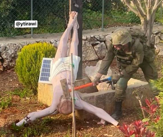 쓰러진 예수상을 망치로 내려치는 이스라엘 병사. 사진 한 장의 충격은 컸다. 세계가 경악했다. 레바논 남부에서 작전 중이던 이스라엘 군인이라고 했다. 누군가 촬영해 SNS에 올렸고, 팔레스타인 언론인이 이를 캡처해 보도했다.