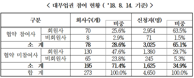 업체들은 신청자 규모를 확인한 후 협약에 참여할지를 고려하겠다는 입장이다.