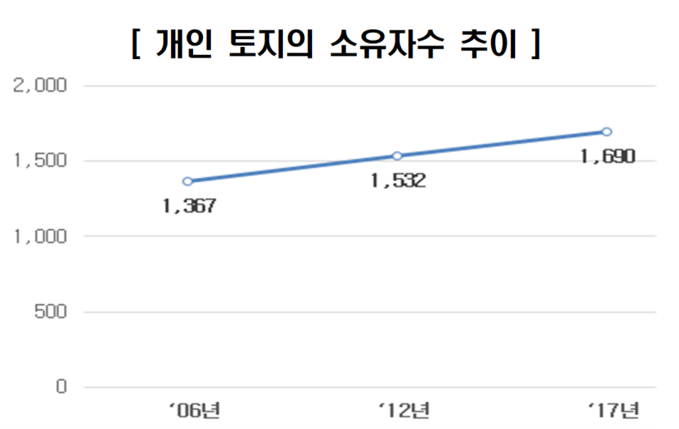▲ 2017년 토지보유자는 1690만명으로 2012년(1532만명)보다 10.3% 증가했다. [국토부 제공]