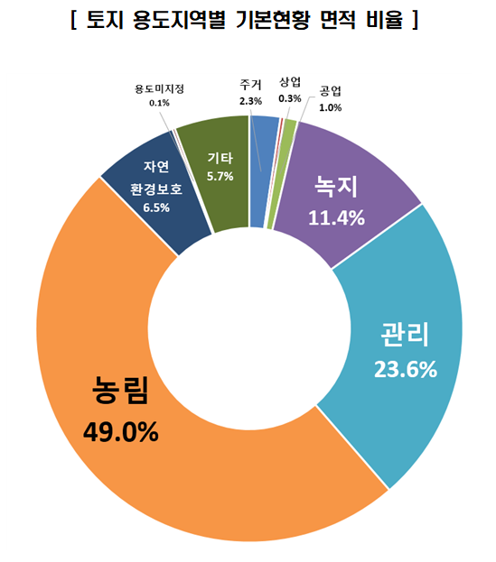 ▲ 용도지역별로는 농림지역이 절반 가까이를 차지했다. [국토부 제공]