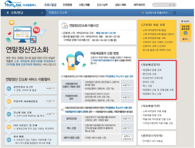 근로자가 부모 등 부양가족이 쓴 신용카드 지출액을 함께 공제받으려면 사전에 자료 제공 동의를 받아야 한다. 자료 제공 동의는 PC나 모바일에서 할 수 있다. 모바일 서비스는 18일부터 가능하다.