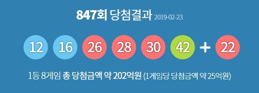 당첨번호 12·16·26·28·30·42 보너스번호 22