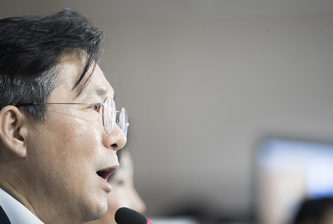▲ 성윤모 산업통상자원부 장관이 5일 오전 서울 종로구 정부서울청사에서 대외의존형 산업구조 탈피를 위한 소재·부품·장비 경쟁력 강화 대책을 발표하고 있다. [정병혁 기자]