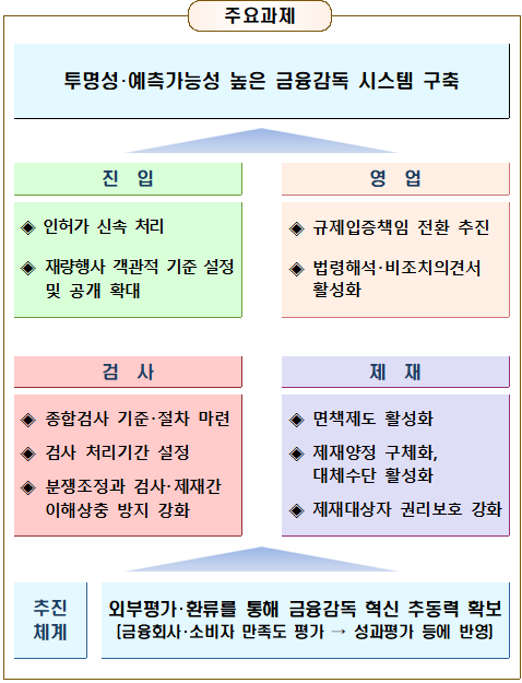 불합리한 감독 관행이 금융 혁신을 가로막지 않도록 '진입-영업-검사·제재' 등 금융감독 전 단계를 개선한다는 게 이번 혁신안의 핵심이다.