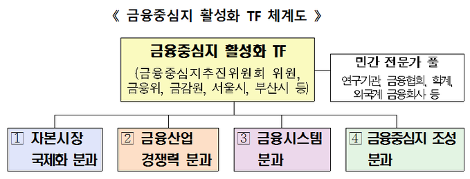 ▲ '금융중심지 활성화 TF' 체계도. 당초 계획대로 운영되고 있지 않은 것으로 확인됐다.
