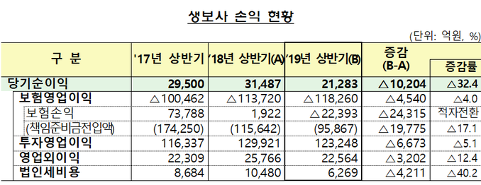 올해 상반기 생명보험사들의 순이익이 30% 넘게 급감했다.