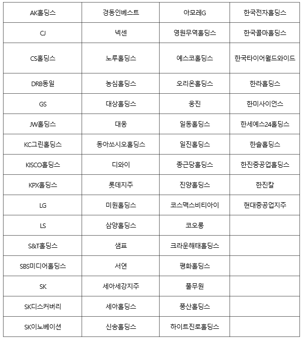 이 가운데 한국표준산업분류가 비금융 지주회사를 '기타 금융업'으로 분류하면서 2017년 7월부터 실제 사업 내용으로는 금융업으로 보기 힘든 일반 지주회사들이 산업별 지수 상 금융업종에 들어가게 됐다.
