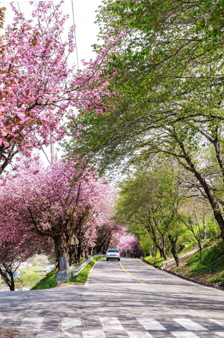 도로를 따라 이어진 벚나무는 꽃망울을 터뜨리며 두 번째 봄을 알리고 있다. 왕벚꽃은 일반 벚꽃이 다 떨어지고 보름 정도 지나면 활짝 핀다.