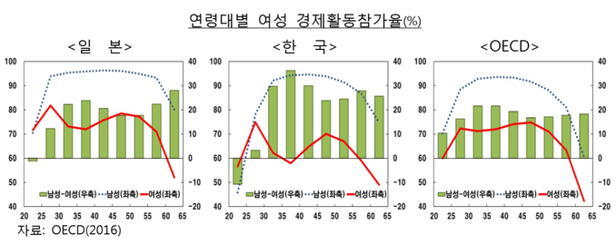 지난해 한은은 '주요국의 여성 경제활동 참여 증가 배경 및 시사점'이라는 보고서에서 "OECD는 최근 한국이 일·가정 양립 제도를 정비해나가고 있으나 장시간 근로, 출산 여성에 대한 불이익 등으로 효과가 제한적이라고 평가했다"며 "향후 보육 지원 제도 확충, 육아휴직 활용 제고 등으로 여성 노동 시장의 양적·질적 성장을 도모해야 할 것"이라고 밝힌 바 있다.